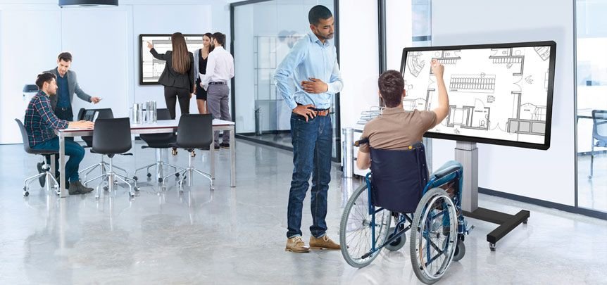 - Le format adapté à votre espace : Un écran de 55 ou 65 pouces est parfait pour un bureau de proximité ou une « huddle room ». Pour une salle de conférence, passez sur du 75 ou 86 pouces pour garantir une visibilité parfaite, même au fond de la pièce.
